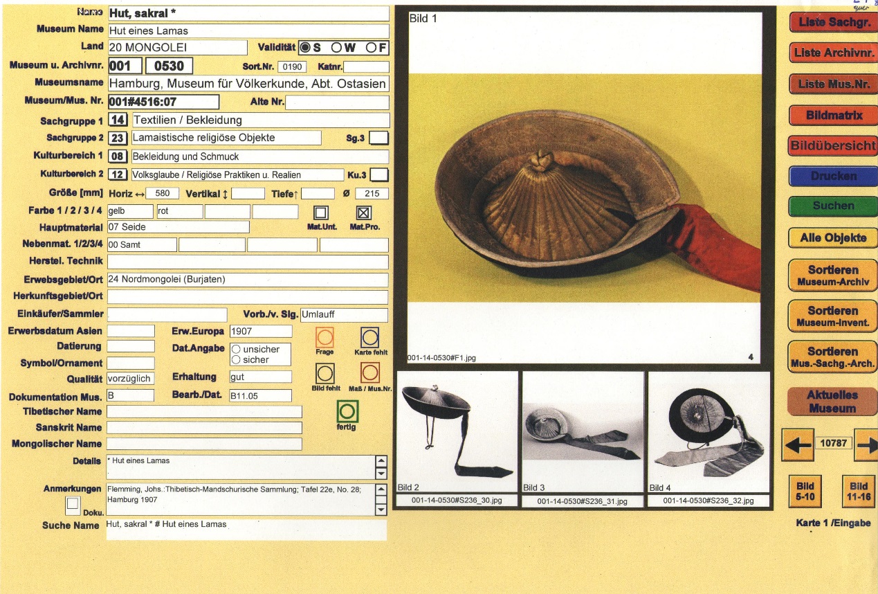 该数据库由德国波恩大学蒙古学研究所属下中亚档案部研发,搜集录入了欧洲100所博物馆收藏的与蒙古有关的近24,000件/套文物的详细信息。自2017年开始,与公司蒙古学研究中心和suncitygroup太阳集团等部门合作,就文物认定和数据库信息完善等领域开展了多项工作,商定共享最终研究成果。数据库现有德、英、基里尔三种版本,预计明年下半年上线,届时将成为研究蒙古文化的重要资料库。