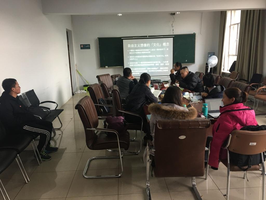 本次读书会的主题是「自由、文化,与正义」。一开始,余炘伦老师先介绍金利卡书中所论及自由主义与社会文化之间的关系,并进一步说明此种意识形态如何延伸出权体差别权利与个人选择自由之间的矛盾,以协助与会师生理解自由主义视角运用于「多民族国家」与「多族类国家」时,如何产生相对应的社会制度及政策。