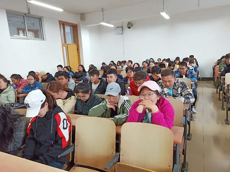 会议开始,由教务科研办公室主任吉日木图老师进行教学管理介绍,包括员工四年的培养方案以及学分制的管理制度,选课的注意事项与员工毕业时的审核问题。其次吉日木图老师向各位同学展示了成绩与绩点的换算关系,提醒各位新生要抓紧学习成绩。其次由苏日太老师上台介绍了包括国家励志奖学金,云亭奖学金,稻盛京瓷奖学金等在内的各类奖助学金的评选细则,激励新生们努力学习,提升个人能力与素质。