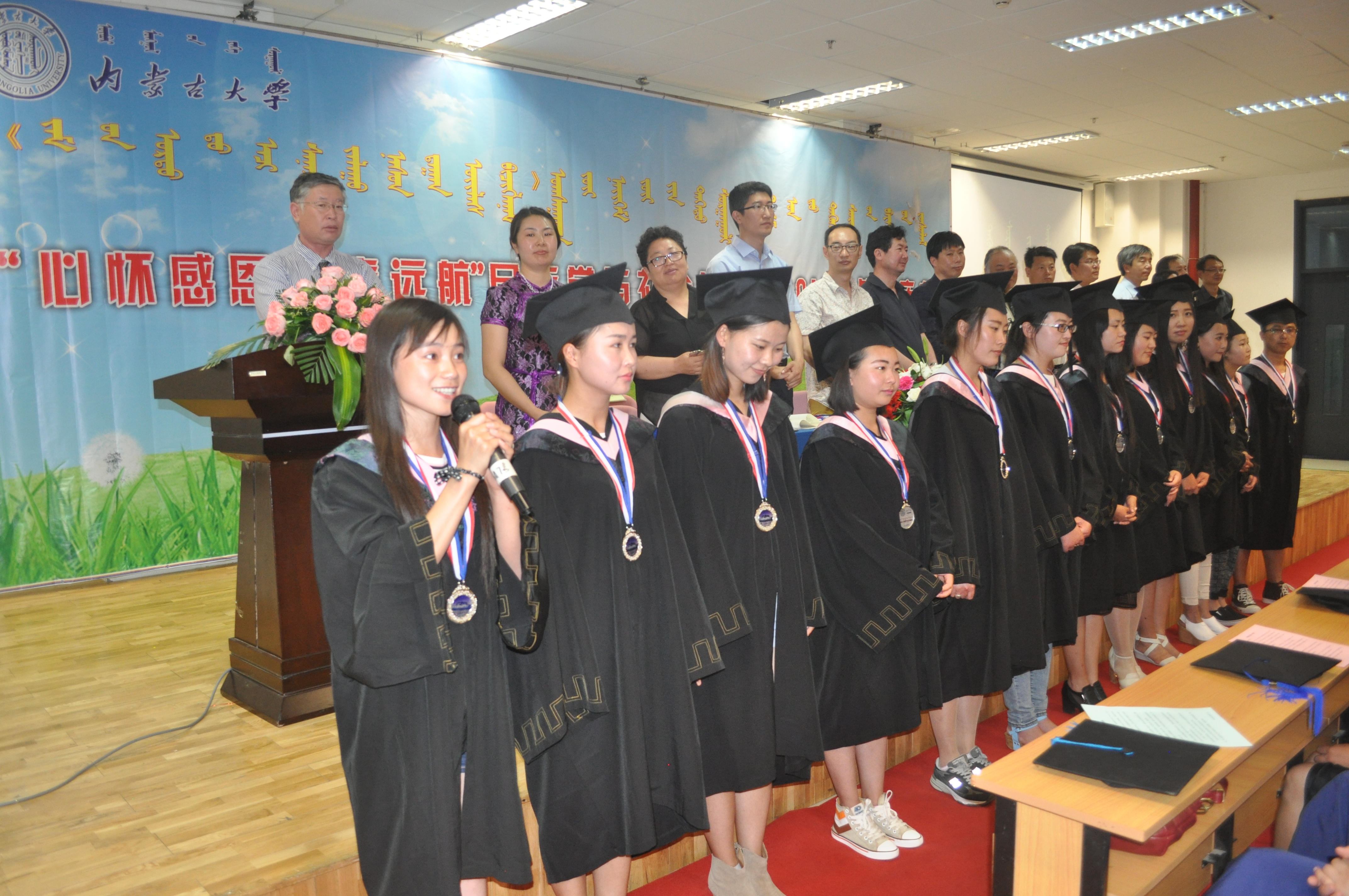庆典上,考取英国谢菲尔德大学硕士研究生的2011级蒙授社会工作专业本科生阿思罕和考取西北民族大学博士研究生的2012级民族学专业硕士研究生阿西德分别代表本科生和硕士研究生做了发言。