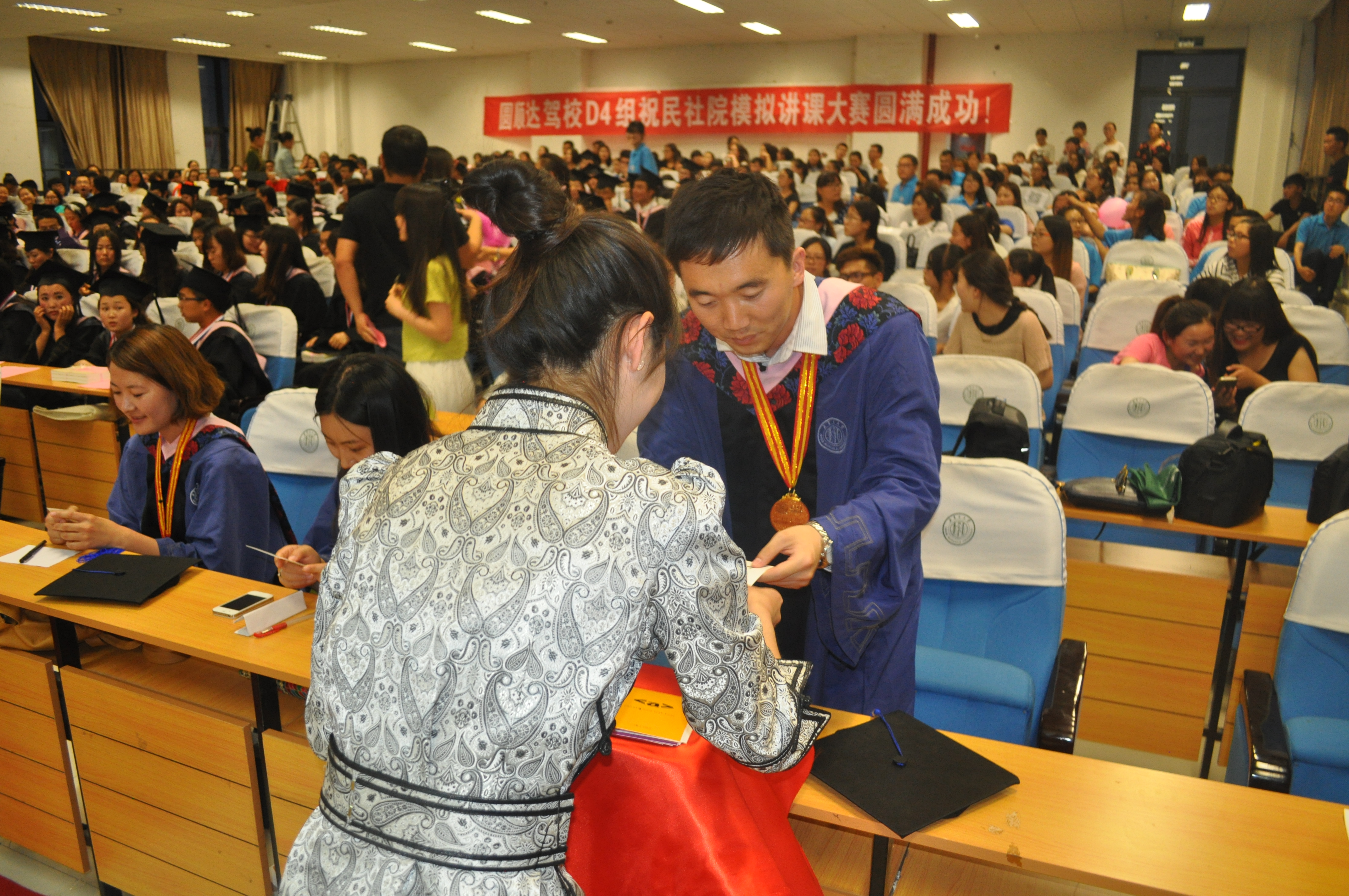 庆典上,学弟学妹们将手工制作的卡片、礼物和鲜花送给毕业生,表达了美好的祝福。