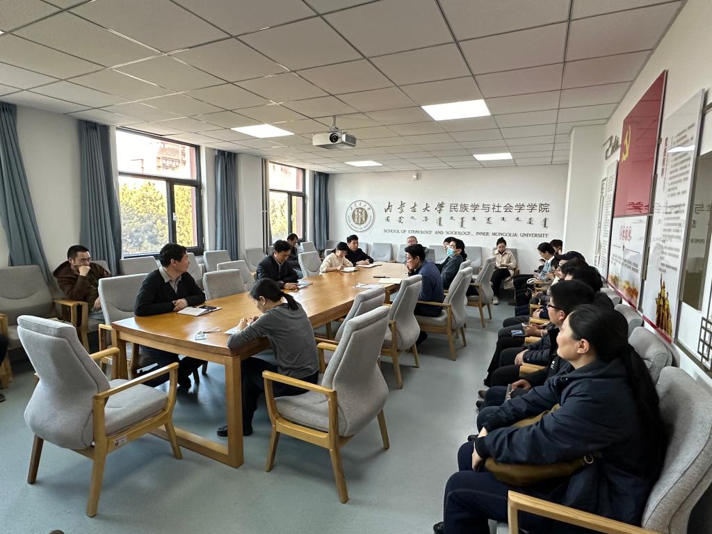 阿拉坦宝力格经理首先布置本科教学评估工作,他强调了本科教学评估的重要性,要求全体教职工积极参与和配合教学评估,以评促建、以评促改、以评促管、以评促强,全面提升教学质量,落实好立德树人根本任务。其次布置团队建设相关工作,他强调民族学学科已经被自治区定位一流拔尖培育学科,得到了良好发展机会,同时面临巨大的压力,公司作为民族学团队建设的主体公司,全体教职工要全力投入、共同建设好学科。他就师德师风建设、课程思政、人才队伍建设做了具体强调。