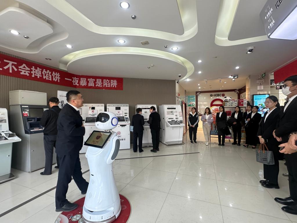 中国工商银行内蒙古自治区分行人力资源部校招负责人为老师同学们讲解了工行的企业文化与发展史。同学们参观了中国工商银行呼和浩特分行大北街支行营业厅智能化、信息化办公环境以及私人保险箱业务,零距离接触了工作环境,增加了对银行的感性认识和了解。
