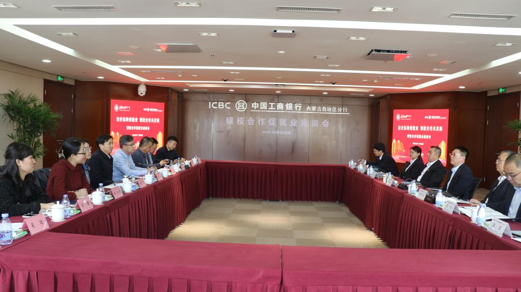座谈会上,张士伟书记向中国工商银行内蒙古自治区分行的领导、相关部门负责人介绍了公司专业设置及毕业生情况,双方就春季校招、员工实习等进行了深入交流。