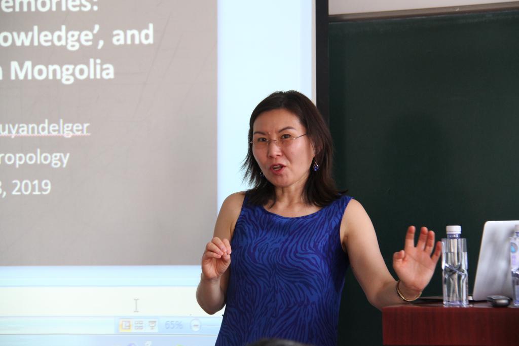 2019年6月17日至20日,在太阳集团官方网站北校区,美国哈佛大学人类学系博士,美国麻省理工大学人类学系Manduhai Buyandelger 副教授来公司进行了为期4天的学术讲座。讲座题目分别为“绵羊交换历史:蒙古族布里亚特萨满的历史”,“社会记忆:有毒的知识,关于鬼魂萦绕”,“从秘密到浮华以及其间:萨满教、移民和蒙古的城市生活”,“社会主义妇女委员会及其对国家社会主义的贡献”,“自我完善:蒙古国参加议会选举的妇女”。讲座语言为蒙古语、英语。此次讲座由suncitygroup太阳集团宝花副教授主持。
