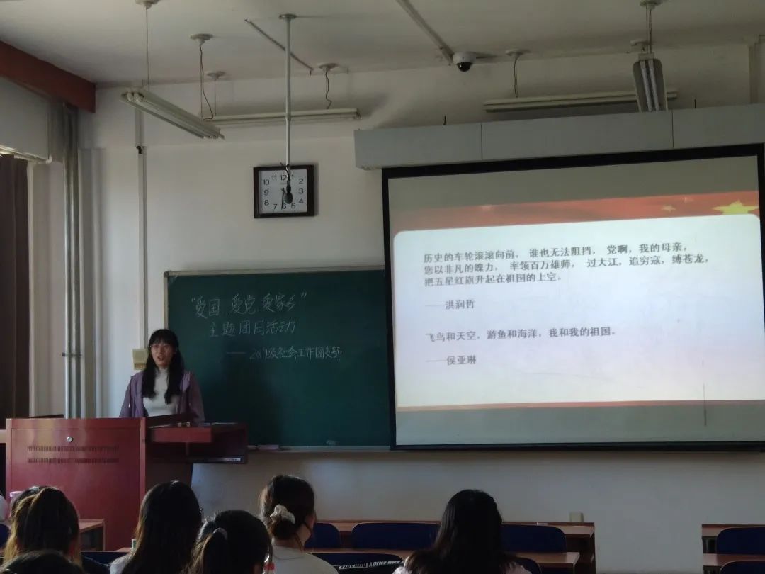 活动中,同学们认真听取团支书所讲授的内容,不仅更加了解了自己祖国的光荣历史,更加深了对祖国、对共产党、对家乡的热爱,激发了同学们的学习热情。