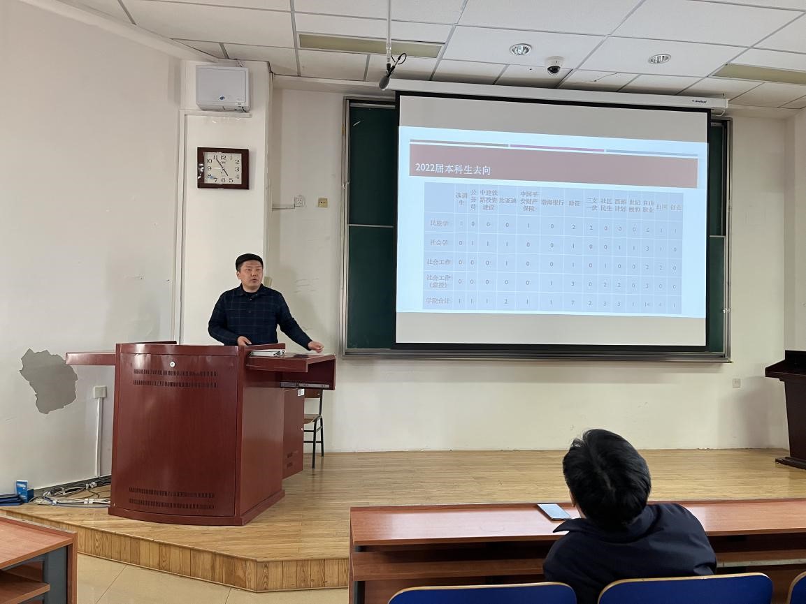 团总支副书记苏日太老师,对2021、2022届毕业生初次就业去向和到目前的就业情况进行分析展示。再跟大家分享了往届员工就业、职业发展案例。建议大家就业要从实际出发,脚踏实地,先进入工作岗位锻炼。