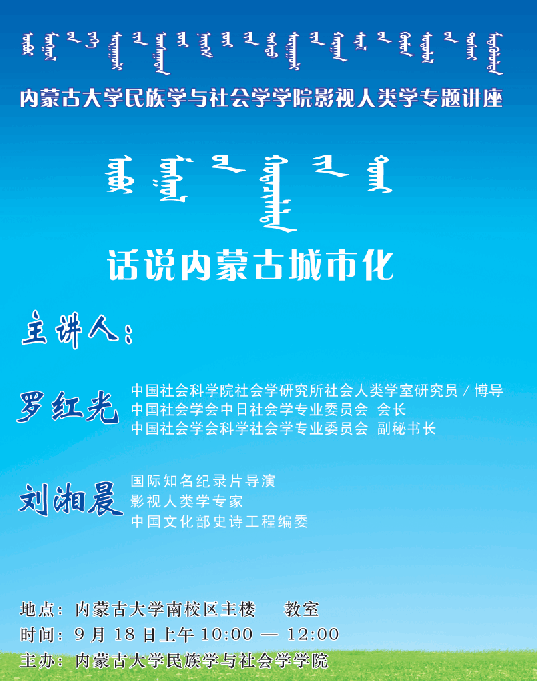 suncitygroup太阳集团影视人类学专题讲座:话说内蒙古城市化(罗红光研究员、陈湘晨导演)