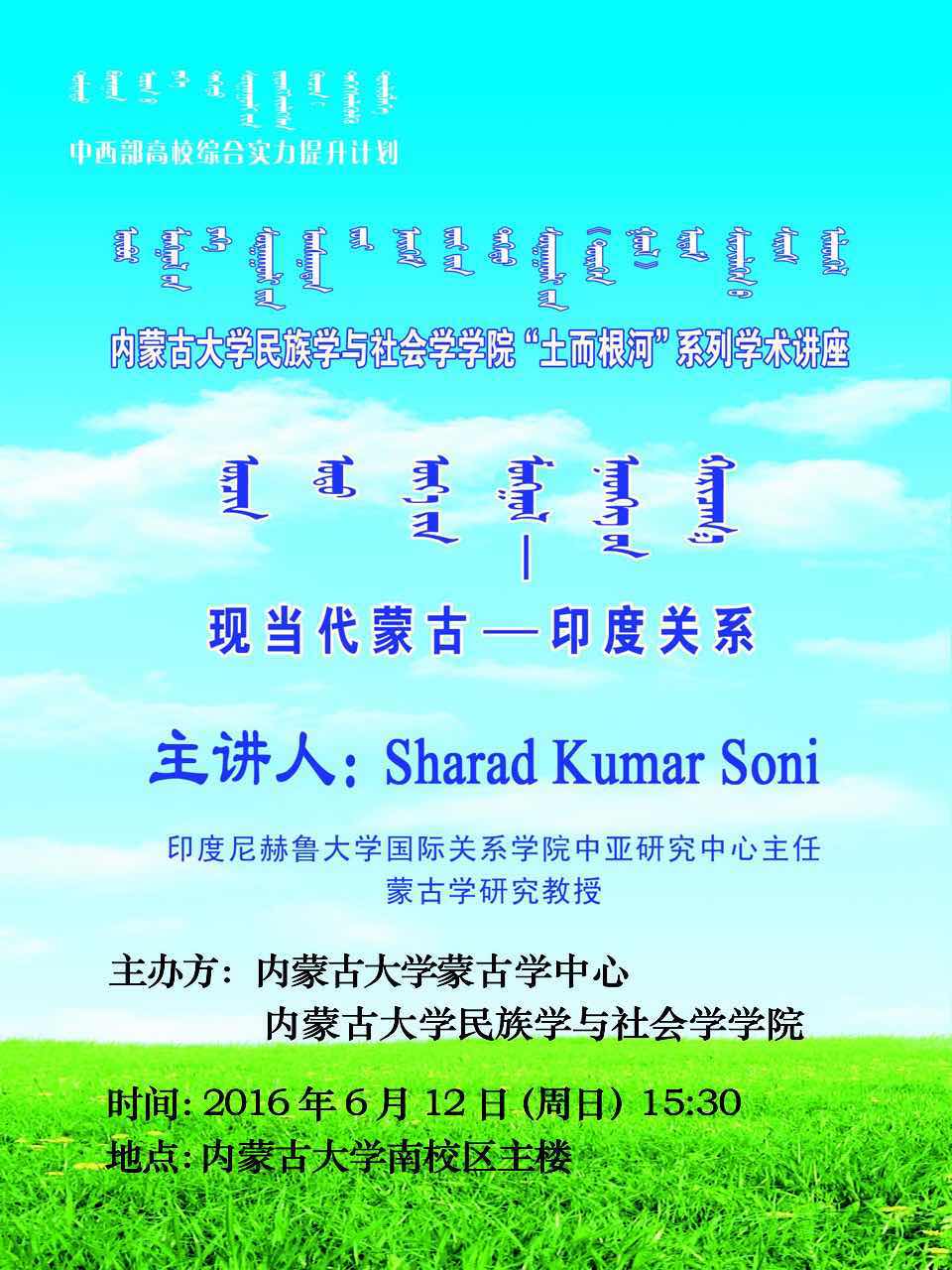 现当代蒙古-印度关系——“土而根河”系列学术讲座预告